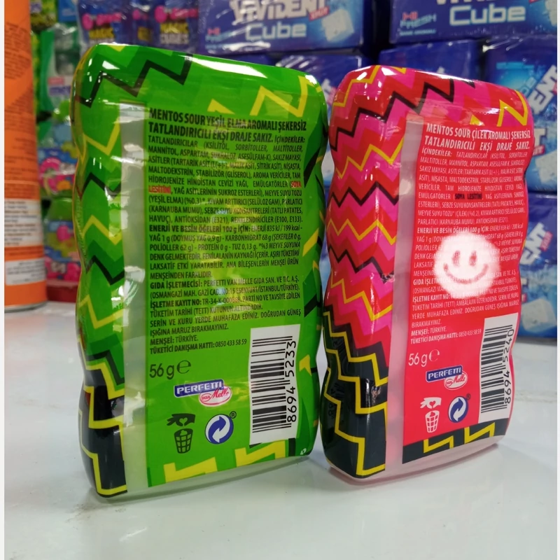 که هر گرم آن حدود 5 کالری دارد یعنی هر بسته 280 کالری. بنابراین، این آدامس یک گزینه کم کالری برای افرادی است که به دنبال کاهش مصرف کالری هستند.