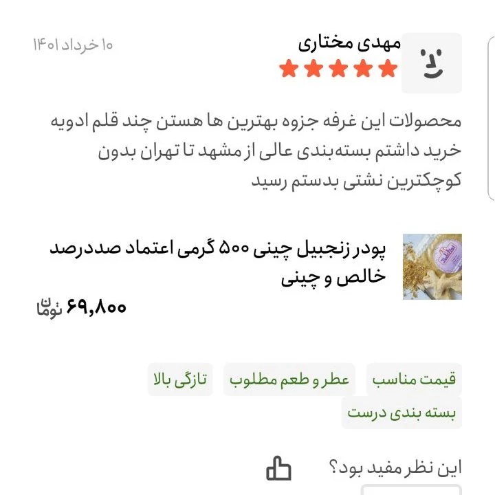 پودر زنجبیل اعلا 500 گرمی اعتماد زنجبیل سابیده خالص