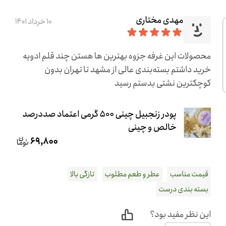 فروشگاه اینترنتی hamechihast / مواد غذایی و سوپر مارکت/ چاشنی و افزودنی ها/ ادویه جات/ ادویههای اصلی/ زنجبیل