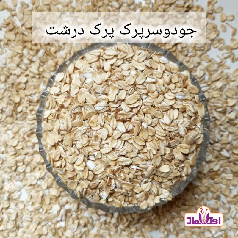 جو دوسر پرک درشت: رنگ آن رو به کرم و بافت دار تر و ضخیمتر است، مخصوص گرانولا و اوتمیل یخچالی که باید یک شب در یخچال بماند.