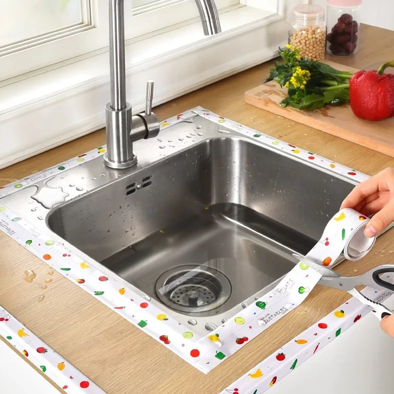 برچسب دور سینک ظرفشویی ، محصولی جدید تولید شده از جنس پی وی سی ، با کیفیت بسیار خوب می باشد . این برچسب پهنایی معادل 3.7 سانتی متر با طول 320 سانتی متر (3.2 متر) دارد که در برابر آب مقاوم است ، خصوصیتی که امکان استفاده از آن برای درزگیری دور سینک را فراهم نموده . دقیقاٌ در وسط نوار چسب خطی قرار دارد که در صورت نیاز به آسانی قابلیت تاشدن برای پوشش قسمت های زاویه دار نظیر درز مابین زمین و دیوار و مواردی مشابه آن را بدون تغییر در ظاهر اولیه خود فراهم آورده . چسبندگی خوب نوار چسب دور توالت فرنگی و امکان برش متناسب با نیاز را به دیگر خصوصیات آن بیافزایید . طراحی ظاهری ایجاد شده بر روی چسب نواری سینک باعث خروج کالا از یکنواختی معمول و همچنین افزایش میزان زیبایی آن برای استفاده بی دغدغه در محیط های مختلف به ویژه قسمت هایی که بیشتر در معرض دید می باشند را به همراه داشته . دور سینک ، دور اجاق گاز ، شیارهای مابین دیوار و سطح ، سرویس فرنگی با زمین و یا هر جای دیگری که نیاز داشته باشید می توانید از چسب نواری درزگیر ضد آب استفاده کنید .