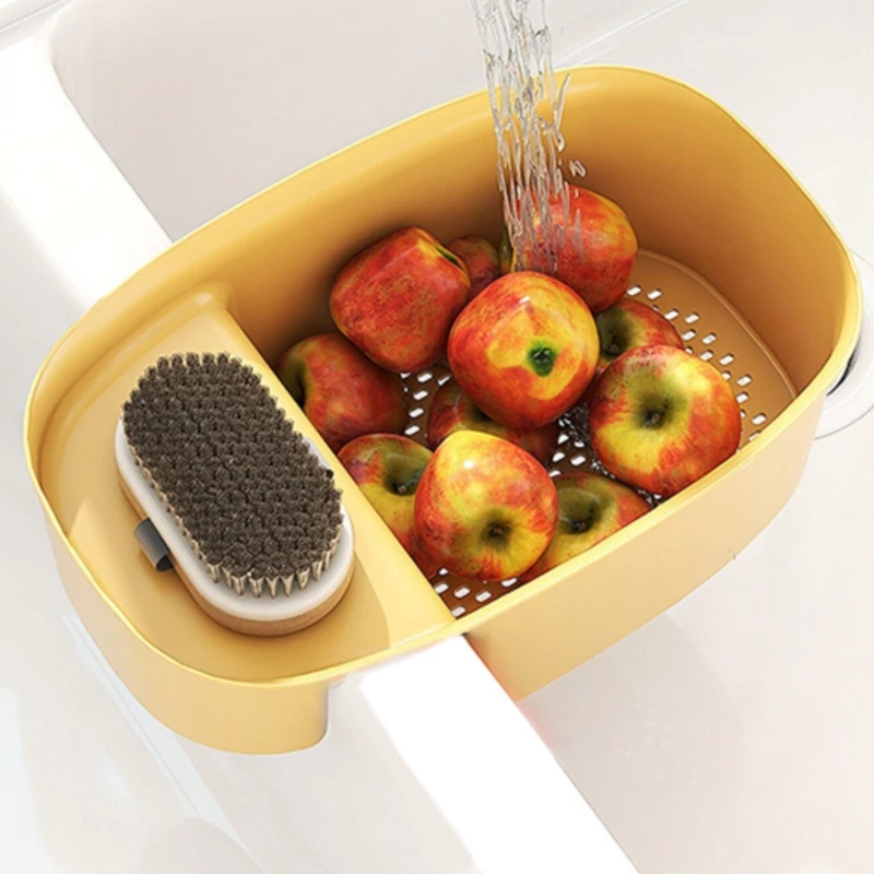 سبد لبه سینک ، یک محصول کاربردی با طراحی نوین و در عین حال زیبا است . این سبد از جنس پلاستیک فشرده باکیفیت تولید شده و دارای رنگ بندی متنوع و چشم نوازی می باشد . دینا که می توان از آن به عنوان سبد تفاله گیر سینک نیز نام برد ، دارای سوراخ هایی در قسمت زیرین خود بوده که علاوه بر قابلیت تخلیه آسان شیرابه ، امکان شست و شو و آبکشی مواد غذایی در ابعاد و حجم کم را نیز فراهم می آورد . جابه جایی راحت ، همراه با تسلط کامل بر روی محصول و همینطور جای گیری بر روی لبه میانی سینک را نیز می بایست به دیگر خصوصیات کالا اضافه نمود . همچنین وجود شیار در قسمت زیرین و پایه کوتاه تر از ارتفاع سبد در یک طرف کالا امکان تخلیه آسان محتویات داخل سبد را فراهم آورده است ، بنابراین به سادگی می توانید علاوه بر داخل و یا روی سینک ، سبد را در میان سینک بر روی لبه دیواره جداکننده دو لگن نیز جای دهید . به جز استفاده به عنوان تفاله گیر سینک ، می توانید برای قرار دادن وسایل شست و شو از فضای داخلی سبد استفاده کنید . سطح روی شیار اتصال بر روی لبه ، مسطح است که از فضای روی آن نیز می توان برای نگهداری لوازم و وسایل کوچک نظیر اسکاچ ، برس و ... نیز بهره برد . قابلیت شست و شو ، اتصال ، استفاده ، تخلیه آب و همچنین جابه جایی آسان ، همگی از خصوصیات اصلی جا اسکاچی وسط سینک به شمار می روند که می توان از آن برای سینک های مختلف (متناسب با ابعاد شیار اتصال بر روی لبه) استفاده نمود .