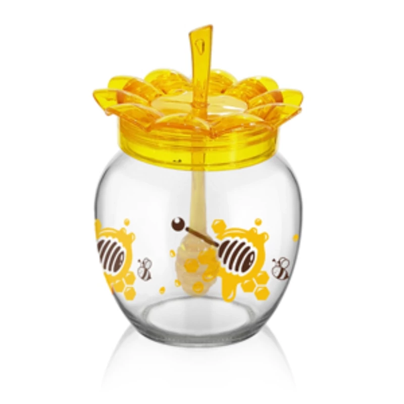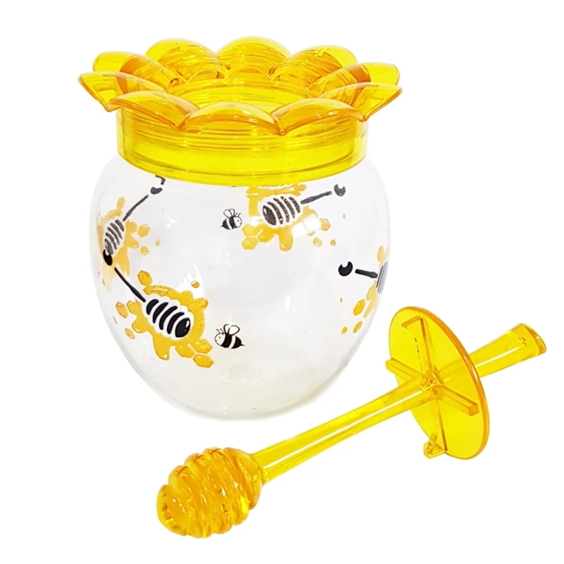 ظرفی متفاوت با طراحی فانتزی ، زیبا و دوست داشتنی که متناسب با سلیقه های مختلف می باشد . این محصول ، ست دو عددی ظرفعسل و مربا طرح گل نام دارد که از جنس پلاستیک فشرده مقاوم تولید شده . ظرفی دارای بدنه شفاف با دیواره های قوس دار که قابلیت مشاهده محتویات درون محفظه را فراهم می کند ، به طوری که رنگ مربا وعسل درون ظرف ، خود به تنهایی ظاهری زیبا پدید می آورد . اما اوج جذابیت ظرف ، درب آن بوده که به شکل گل طراحی شده ، گلی که گلبرگ های آن شفاف و در عین حال رنگی هستند . این گل در میان خود قلبی را جای داده که علاوه بر ظاهر زیبا ، نقش دسته قاشق مربا وعسل خوری همراه ظرف را برای دسترسی آسان کاربر ایفا می کند . قاشق در میان گل به صورت ایستاده و ثابت جای گرفته و به راحتی قابل استفاده می باشد . از این ظرف مربا وعسل خوری شیک می توانید برای نگهداری و همچنین سرو انواع مربا و عسل استفاده نمایید .