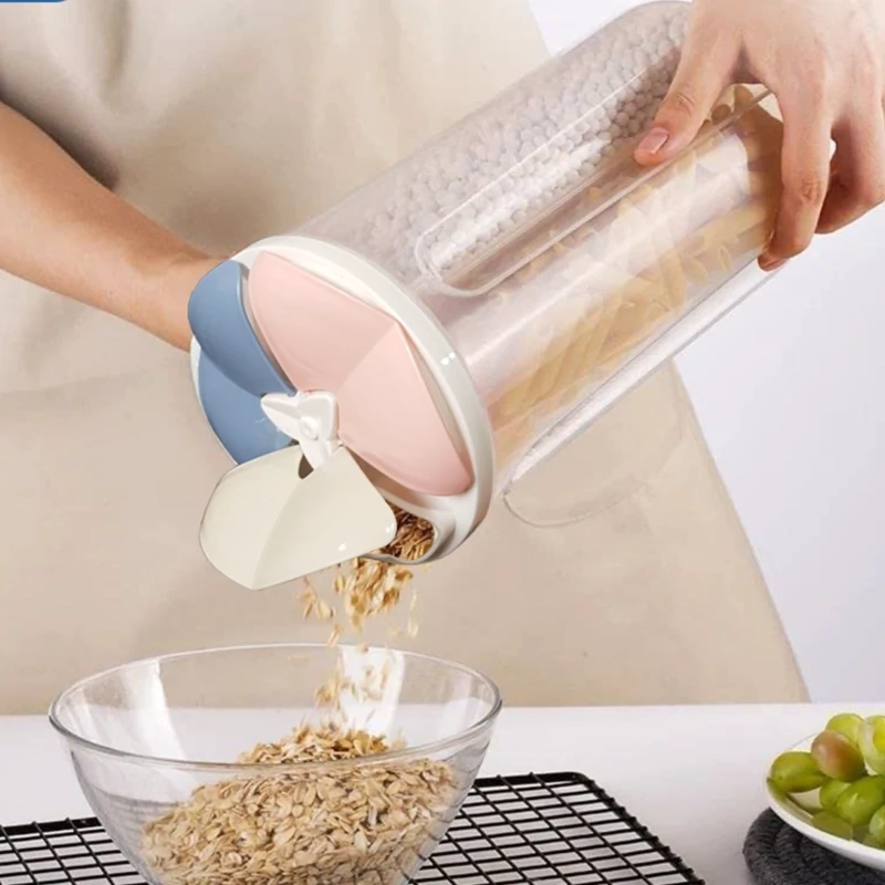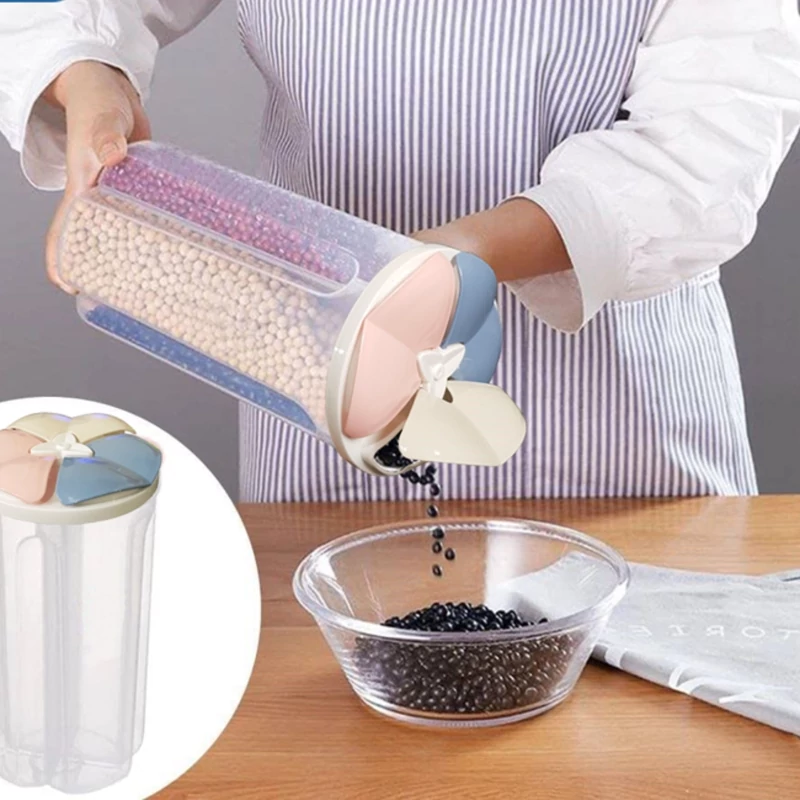 ظرف سه قسمتی حبوبات ، محصولی با طراحی خلاقانه و کاربردی با قابلیت تبدیل می باشد . این ظرف از جنس پلاستیک مقاوم و با کیفیت تولید شده . محفظه داخلی ارگانایزر حبوبات مجهز به سه دیواره متصل به یکدیگر است که فضای ظرف را به سه قسمت مجزا تبدیل می کند که از هر کدام از محفظه ها می توان برای نگهداری مواد غذایی مختلف نظیر حبوبات استفاده نمود . اما قابلیت برداشتن دیواره ها به شما این امکان را می دهد تا فضای داخلی محفظه را به یک محفظه برای ایجاد امکان استفاده حداکثری از آن تبدیل کنید . بر روی دهانه ظرف نیز پوششی با سه خروجی مجزا و درب روی آنها تعبیه شده که هر کدام از خروجی های بر روی یکی از محفظه ها قرار می گیرد و می توان با استفاده از ان محتویات درون محفظه را به میزان دلخواه تخلیه نمود . این ویژگی امکان استفاده سریع و آسان از مواد غذایی داخل ظرف را خواهد داد . از باکس حبوبات 3 خانه با ظرفیت 2500 میلی لیتر می توانید در آشپزخانه به جای چند ظرف برای نگهداری و همچنین دسترسی سریع و آسان به مواد غذایی مختلف نظیر حبوبات ، ادویه و ... استفاده کنید .