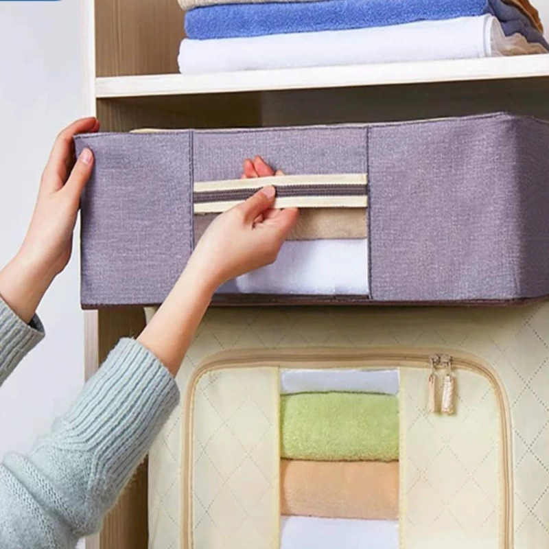 ابزاری کاربردی برای استفاده حداکثری از فضاهای باریک نظیر زیر تخت ابتدای معرفی باکس لباس داخل کمد است . محصولی نوین و در عین سادگی ، زیبا که امکان استفاده از فضاهای مختلف را بدون وجود محدودیت برای شما محیا می کند . لباس ، وسایل شخصی و یا هر لوازمی دیگری را که بخواهید می توانید درون محفظه باکس قرار داده و در فضایی به صورت منظم نگهداری کنید . دستگیره تعبیه شده در قسمت جلوی محفظه علاوه بر امکان حمل و جابه جایی آسان ، به شما این امکان را می دهد تا به سادگی بقچه را در فضاهای باریک به سمت بیرون کشیده و به طرف داخل هدایت کنید . در زیر دستگیره نیز پوششی طلقی شکل از جنس پلاستیک ضخیم و کاملاً شفاف قرار داده شده که امکان مشاهده محتویات درون باکس لباس زیر تختی را فراهم می کند . نوع طراحی محصول و همچنین امکان جابه جایی آسان آن قابلیت استفاده از باکس برای مسافرت را نیز فراهم آورده است . محصول فوق ، فاقد چهار چوب بوده و صرفاً یک محفظه مکعبی برای نظم بخشیدن به البسه و سایر لوازم و وسایل شخصی می باشد