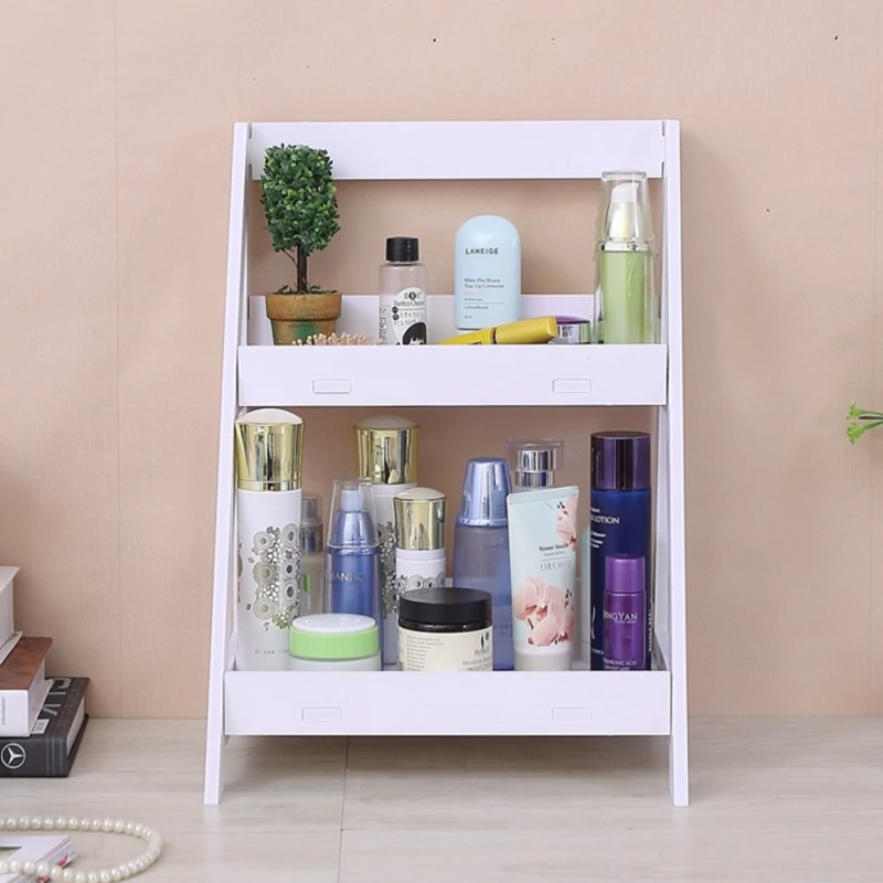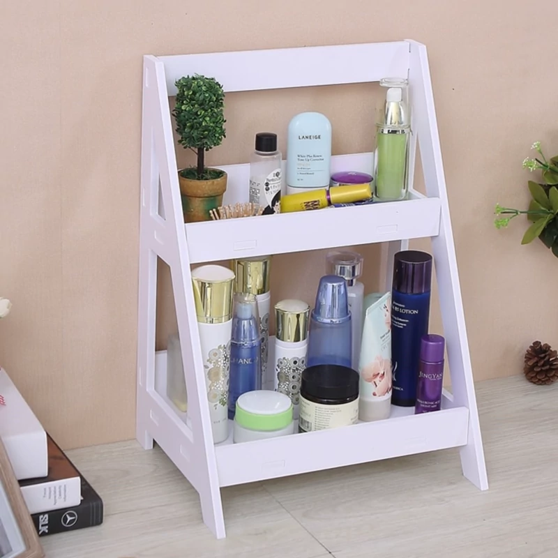 استند لوازم آرایش دو طبقه ، محصولی با طراحی ظاهری ساده و در عین حال بسیار زیبا که جلوه ای خاص را بر روی میز اتاق شما به وجود خواهد آورد . این شلف لوازم آرایشی از نوع شلف رومیزی می باشد که از جنس پی وی سی و با کیفیت بسیار بالایی تولید شده است و از آن می توانید برای نگهداری لوازم آرایشی و بهداشتی مختلف به صورت منظم بر روی میز اتاق خود استفاده نمایید .علاوه بر این لوازم می توانید از شلف رومیزی برای نگهداری وسایل تزئینی ، لوازم حمام ، لوازم تحریر و ... نیز بهره ببرید . به کارگیری این محصول علاوه بر ایجاد نظم در نگهداری از وسایل و همچنین ایجاد زیبایی محیطی ، فضای بیشتری را بر روی میز برای شما محیا می کند .
