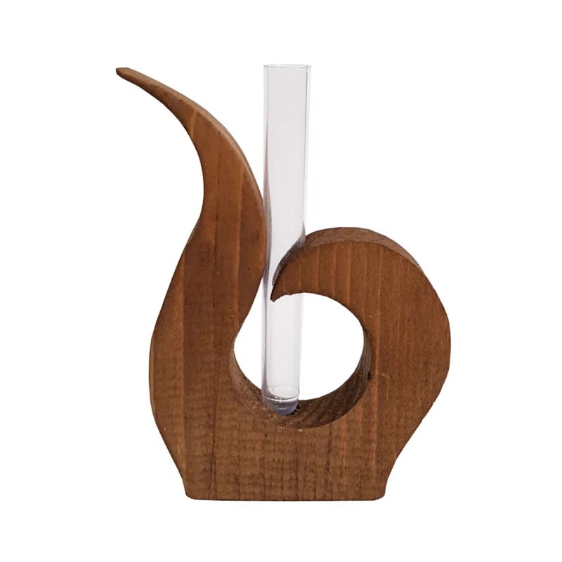 گلدان چوبی مدل لاله ، یک گلدان زیبا با طراحی نوین می باشد که از جنس چوب مرغوب و با کیفیت تولید شده است . شکل ظاهری گلدان همانند لاله ای است که یکی از گلبرگ های آن به سمت داخل برگشته و گلبرگ دیگر همانند حالت معمول باز می باشد ، اما زیبایی این گلدان فانتزی را می توان محفظه لوله ای شکل شفافی دانست که در میان دو گلبرگ جای داده شده . این محفظه دارای دهانه ای کوچک به قطر 1 سانتی متر می باشد که محل قرارگیری یک یا حداکثر دو شاخه گل متناسب با ابعاد محفظه است . در میان لاله چوبی شاخه گلی زیبا قرار می گیرد که می تواند زیبایی و جلوه ای متفاوت را برای تزئین روی میز شما به ارمغال بیاورد .