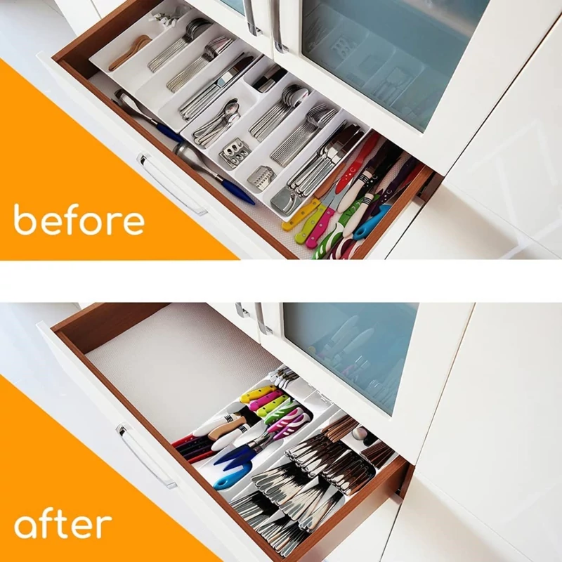 جا قاشقی داخل کشوی کابینت ، ابزاری کاربردی با طراحی ظاهری ساده و در عین حال زیبا است که می تواند برای شما امکان نگهداری کارد ، چنگل و قاشق ها را به صورت منظم و تفکیک شده فراهم می کند . این محصول از جنس پلاستیک مقاوم و با کیفیت تولید شده و دارای 9 خانه مجزا از یکدیگر در چهار ردیف می باشد . درون هر ردیف می توانید قاشق ، چنگال و کارد قرار دهید . ردیف چهارم متفاوت از بقیه ردیف ها که دارای دو خانه می باشند از 3 خانه با ارتفاع کمتر تشکیل شده که از آنها می توان برای جای دادن ابزار کوچکتر نظیر قاشق چای خوری استفاده نمود . بزرگترین وجه تمایز این محصول با نمونه مشابه را می توان اشغال فضای کمتر و همچنین ایجاد قابلیت استفاده حداکثری از فضای داخل کشو و کابینت عنوان نمود . قاشق ، چنگال ، کارد ، قاشق چای خوری و چنگال میوه خوری خود را درون محفظه های نگهدارنده به صورت منظم جای دهید تا علاوه بر اشغال فضای کمتر ، دسترسی سریع تر و ساده تر در موقع نیاز به آنها داشته باشید .