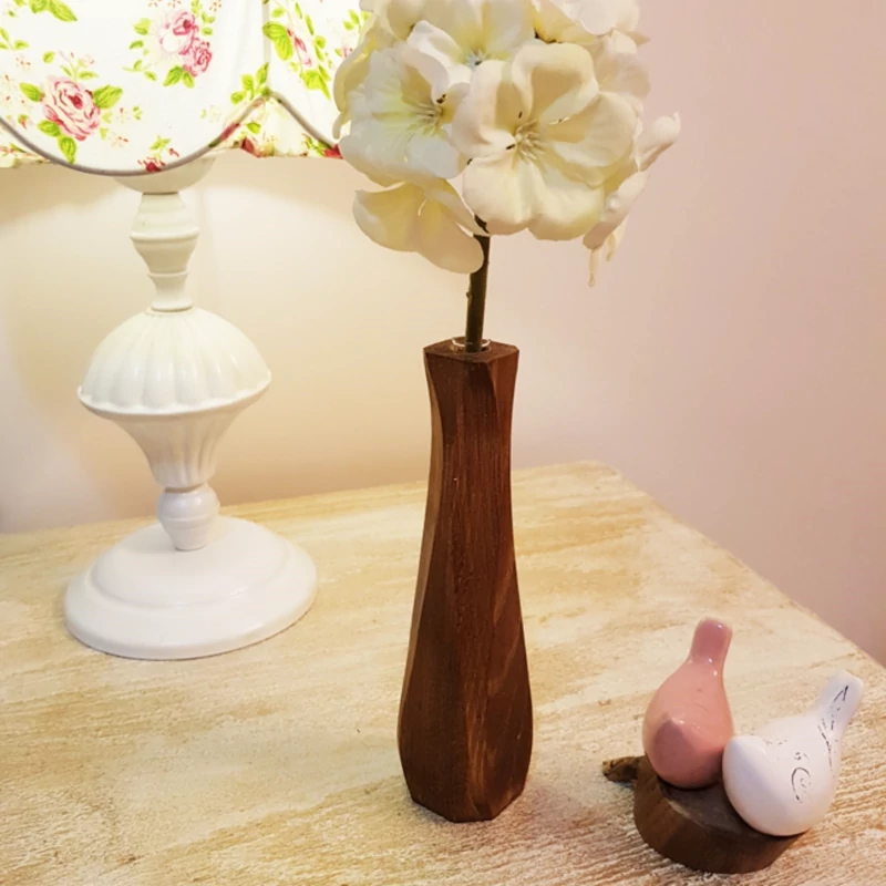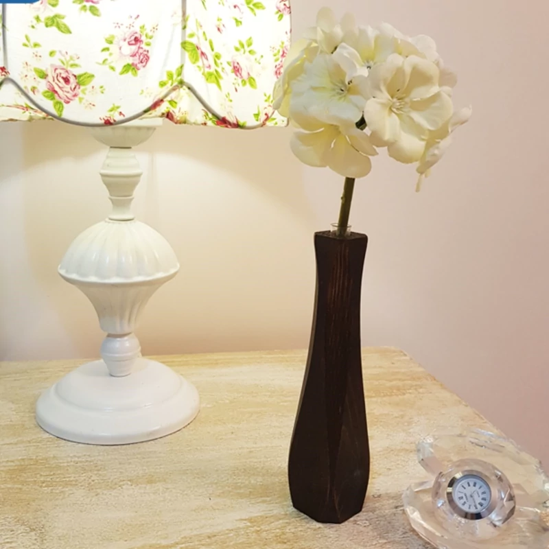 گلدان چوبی مدل کاج ، محصولی با طراحی ظاهری مدرن و زیبایی خاص در عین سادگی است . این گلدان از نوع رومیزی و مناسب برای شاخه گل می باشد که از جنس چوب با کیفیت تولید شده است . یک چهار وجهی که از پایین به بالا باریک تر شده و زوایای 90 درجه آن با برش از بین رفته و جلوه ای خاص را برای آن پدید آورده است . درون گلدان ، حفره ای استوانه ای شکل وجود دارد که در آن محفظه ای لوله ای جای داده شده تا علاوه بر قرار گرفتن یک یا حداکثر دو شاخه گل قابلیت حفظ مقداری آب را درون خود داشته باشد . گلدان چوبی رومیزی طرح کاج در سه رنگ قهوه ای تیره ، قهوه ای روشن و کرم ارائه می شود که می توان برای تزیین روی میزهای مختلف در منزل ، محیط های کاری ، کافی شاپ ها ، رستوران ها و .... از آنها استفاده نمود .