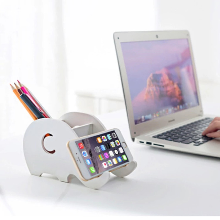 شلف رومیزی طرح فیل ، محصولی با طراحی نوین ، زیبا و فانتزی است . این شلف دارای ظاهری مشابه به یک فیل می باشد . شلف رومیزی از جنس پی وی سی تولید شده که مقاوم در برابر رطوبت و آب است و شما می توانید به راحتی آن را تمیز کنید . نوع طراحی شلف به گونه ای است که قادر خواهید بود از آن به عنوان استند موبایل و تبلت ، نگهدارنده لوازم التحریر نظیر خودکار و مداد استفاده نمایید . شما می توانید از شلف و باکس طرح فیل ، بر روی میز تحریر ، میز کار و ... استفاده نمایید تا علاوه بر ایجاد جلوه ای زیبا و متفاوت ، نظمی دوباره بر روی میز کار شما به وجود آورد .
