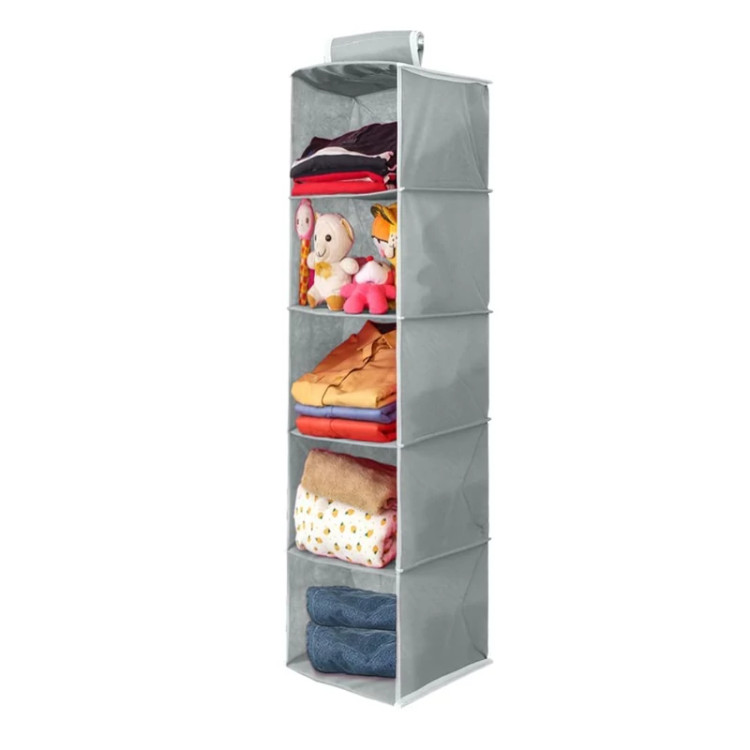 یک نظم دهنده با طراحی و عمکردی متفاوت ، کاربردی و البته مورد نیاز به ویژه برای داخل کمد . این کالا تولید شده از جنس پارچه مقاوم و باکیفیت می باشد که شامل 5 طبقه مجزا است ، فضاهایی که امکان نگهداری لوازم و وسایل مختلف به صورت تفکیک شده و با قابلیت دسترسی آسان را برای کاربر خود فراهم آورده اند . داخل پارچه ارگانایزر در قسمت کفی طبقات از لایه ای چوبی استفاده شده که باعث حفظ فرم ظاهری محصول به هنگام استفاده و همچنین نگهداری بهتر لوازم داخل طبقات شده ، بنابراین کاملاً منظم و شیک داخل کمد ظاهر خواهد شد . روی قسمت بالایی باکس لباس طبقه ای ، قلابی پارچه ای از نوع چسب دار طراحی شده که امکان نصب و جداسازی آسان کالا بر روی میله آویز لباس داخل کمد را فراهم آورده ، بنابراین به هنگام نیاز نصب و استفاده نموده و سپس جدا کرده و در کمترین فضای ممکن از آن نگهداری کنید .