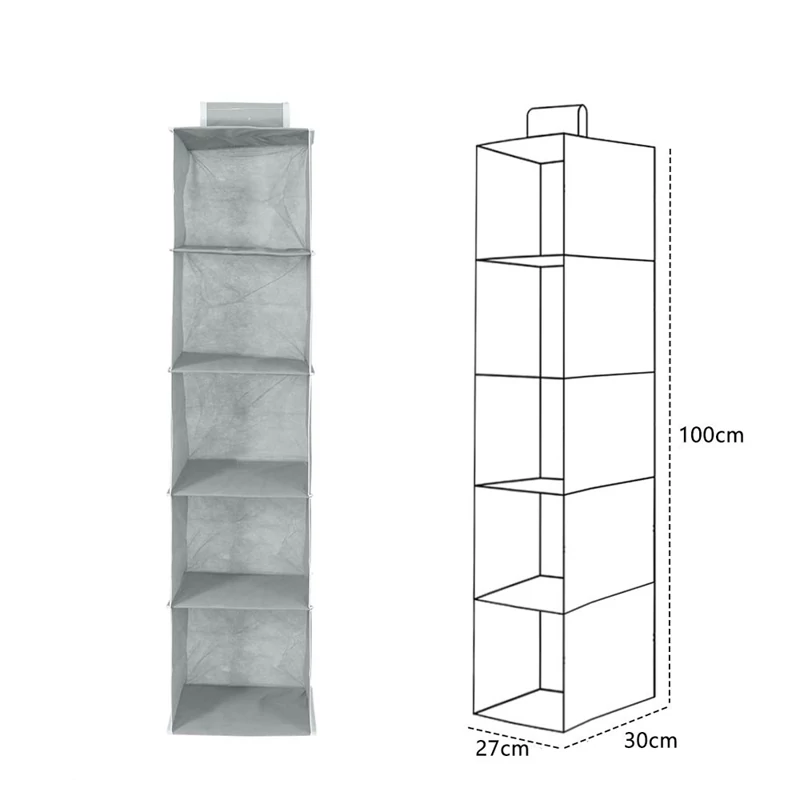 یک نظم دهنده با طراحی و عمکردی متفاوت ، کاربردی و البته مورد نیاز به ویژه برای داخل کمد . این کالا تولید شده از جنس پارچه مقاوم و باکیفیت می باشد که شامل 5 طبقه مجزا است ، فضاهایی که امکان نگهداری لوازم و وسایل مختلف به صورت تفکیک شده و با قابلیت دسترسی آسان را برای کاربر خود فراهم آورده اند . داخل پارچه ارگانایزر در قسمت کفی طبقات از لایه ای چوبی استفاده شده که باعث حفظ فرم ظاهری محصول به هنگام استفاده و همچنین نگهداری بهتر لوازم داخل طبقات شده ، بنابراین کاملاً منظم و شیک داخل کمد ظاهر خواهد شد . روی قسمت بالایی باکس لباس طبقه ای ، قلابی پارچه ای از نوع چسب دار طراحی شده که امکان نصب و جداسازی آسان کالا بر روی میله آویز لباس داخل کمد را فراهم آورده ، بنابراین به هنگام نیاز نصب و استفاده نموده و سپس جدا کرده و در کمترین فضای ممکن از آن نگهداری کنید .