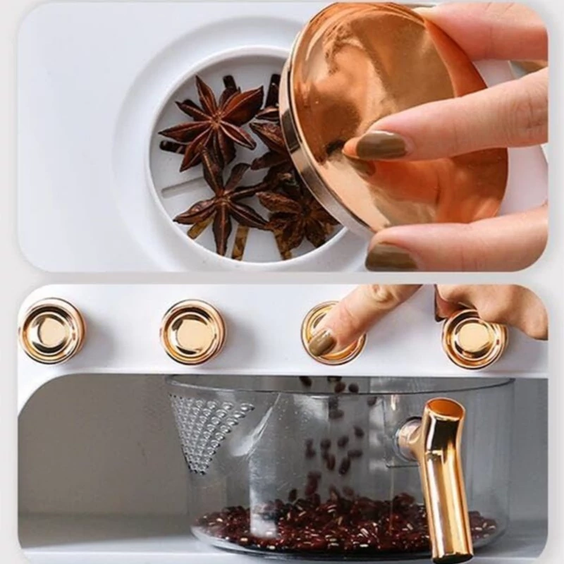 محفظه مجزا طراحی شده بر روی درب کالا برای جای دادن میخک ، حبه سیر و ... جهت نگهداری حبوبات به دور از آفات و حشره ها
