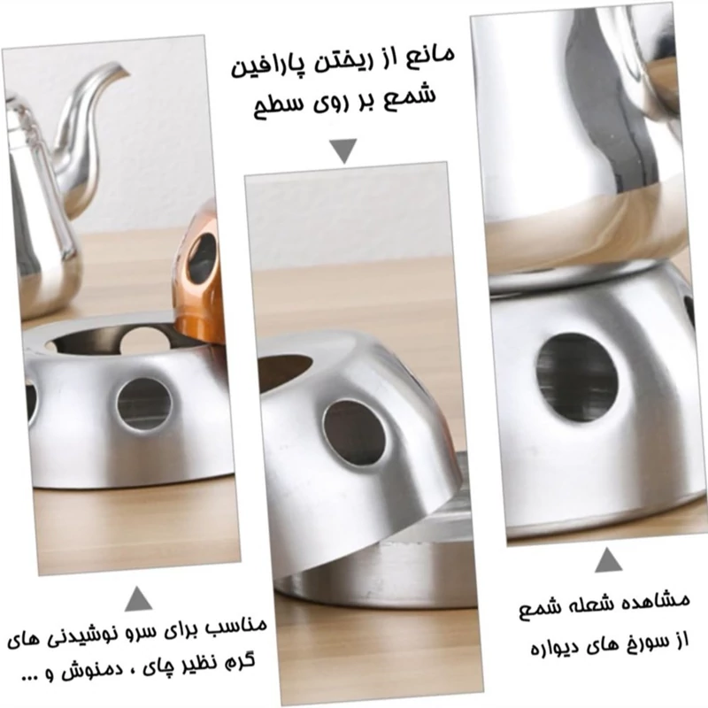 کالایی جدید با طراحی ظاهری خاص و منحصر به فرد که شاید کمتر مشابه آن را دیده باشید . استند دمنوش وارمردار تولید شده از جنس استیل مقاوم و باکیفیت است که ابعاد مناسبی دارد ، بنابراین می توان به سادگی از آن بر روی میز پذیرایی استفاده کرد بدون اینکه فضای زیادی را اشغال کند . جا وارمری قوری دارای کفی یک دست است که درون خود شمع را جای میدهد ، بنابراین پارفین آب شده شمع بر روی سطح نمیریزد . سوراخ های ایجاد شده بر روی بدنه به صورت دورتا دور علاوه بر وجه زیبایی کالا ، امکان دیدن شعله ملایم شمع درون ظرف را به کاربر خواهد داد که جلوه ای منحصر به فرد را پدید می آورد . گرم نگه داشتن قوری چای ، قهوه ، دمنوش و ... ، در عین زیبایی ظاهری ، خصوصیاتی هستند که امکان استفاده از استند وارمر استیل بر روی میز پذیرایی را فراهم آورده اند ، پس متفاوت انتخاب کنید .