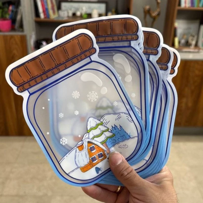 طراحی ظاهری زیبا ، فانتزی و چشم نواز که می توان شمایل آن را همه پسند معرفی کرد . شکل محصول همانند یک بانکه شیشه ای طراحی شده که بر روی خود طرحی از یک منظره برفی دارد ، خصوصیتی که توانسته جذابیت ظاهری آن را افزون گرداند . محتویات درون زیپ کیپ از بیرون تا حدی مشخص می باشد ، بنابراین می توانید از محتویات و مقدار آن درون محفظه مطلع شوید . کالا در بسته بندی 5 عددی ارائه شده که با توجه به ابعاد و شکل ظاهری ، قابلیت استفاده برای جای دادن مواد غذایی نظیر ادویه درون منزل و خوراکی هایی همانند آجیل ، بیسکوییت و ... برای کودکان داخل مدرسه را فراهم آورده . داخل منزل ، مدرسه ، کمپ ، سفر و یا هر جایی که نیاز باشد می توانید زیپ کیپ طرح فانتزی را به همراه خود داشته باشید ، تا خوراکی های خود را در فضایی امن به دور از آلودگی با دسترسی آسان و البته اشغال کمترین فضای ممکن در اختیار داشته باشید .