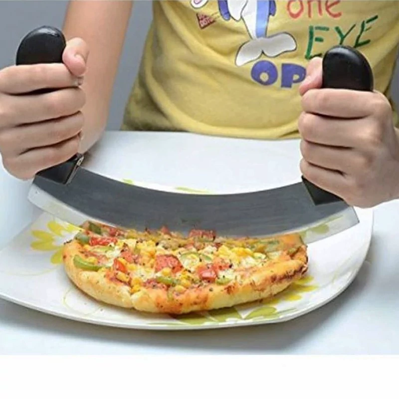 محصولی نوین ، زیبا در عین سادگی و البته بسیار کارآمد که دارای تیغه ای هلالی از جنس استیل است . نوع تیغه باعث می شود تا بدون نیاز به برداشتن های متوالی برش زن از روی سطح و یا اصطلاحاً جداکردن تیغه از سطح بتوانید به صورت سریع تر عمل برش را انجام دهید . دو دسته تعبیه شده در دو طرف تیغه امکان استفاده از هر دو دست برای کار را فراهم آورده ، خصوصیتی که تسلط بیشتر و البته صرف انرژی کمتر برای کاربر در حین کار را به همراه دارد ، بنابراین به سادگی می توانید پیتزا و البته سبزیجات را با استفاده از کاتر پیتزا هلالی برش زده و استفاده نمایید . قابلیت شستشو و تیز کردن تیغه را نیز به دیگر خصوصیات کالا نیز باید اضافه کرد .