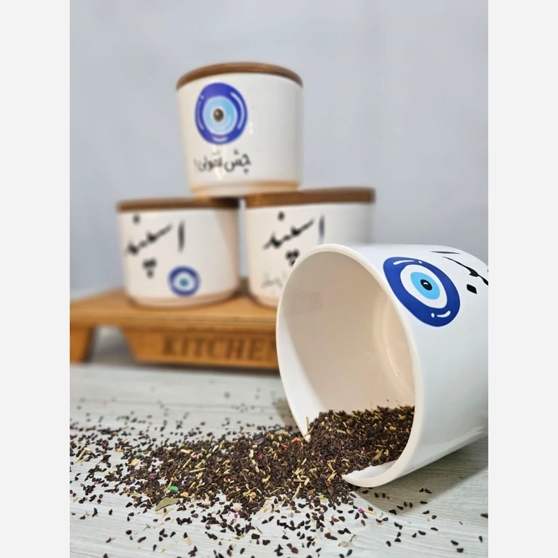 بانکه اسپند گرد بزرگ تکست دار قطر: 12cm ارتفاع: 10cm