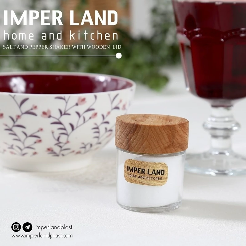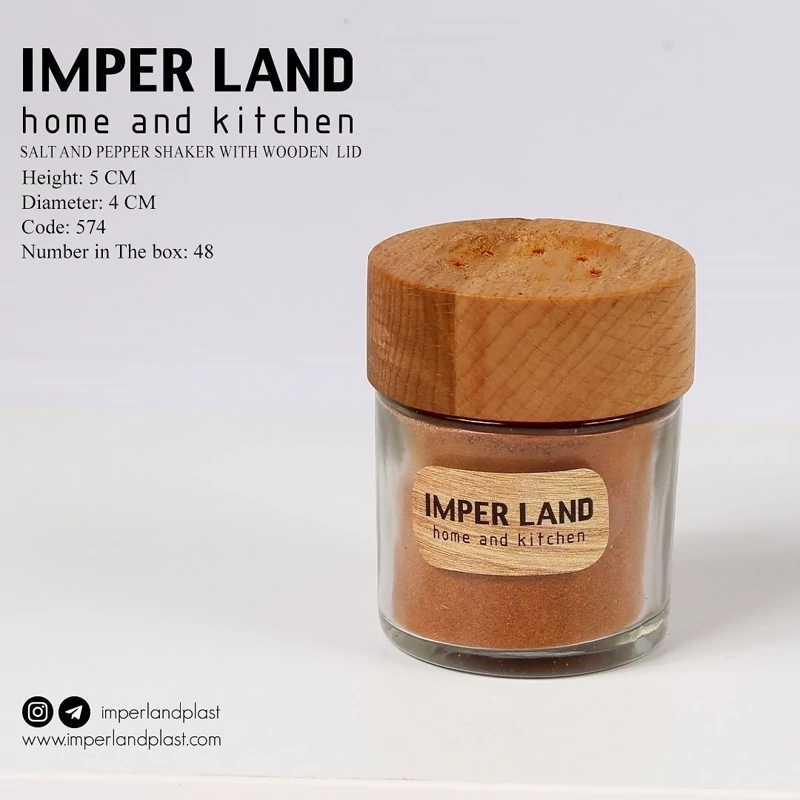 نمکپاش استوانه کوتاه درب چوبی ارتفاع: 5cm قطر: 4cm