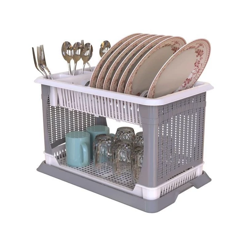 سبد آبچکان یا جا ظرفی دو طبقه گرند کاری بسیار زیبا و کاربردی دارای دو رنگ طوسی و صورتی قیمت بسیار مناسب