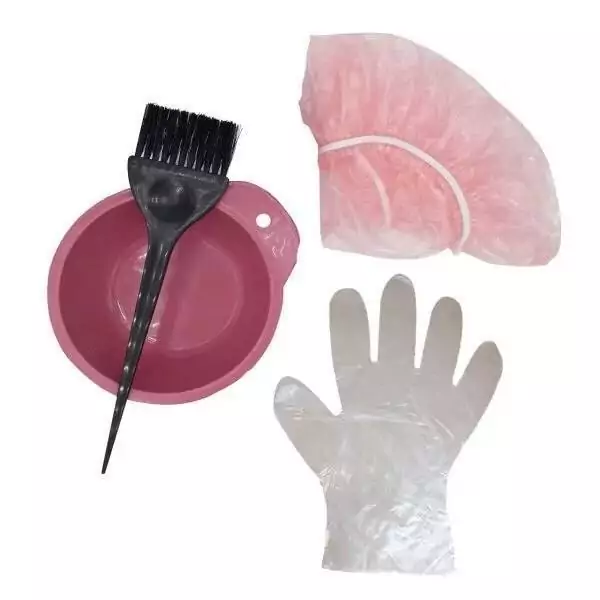 کاسه رنگ مو بهمراه فرچه دستکش و کلاه