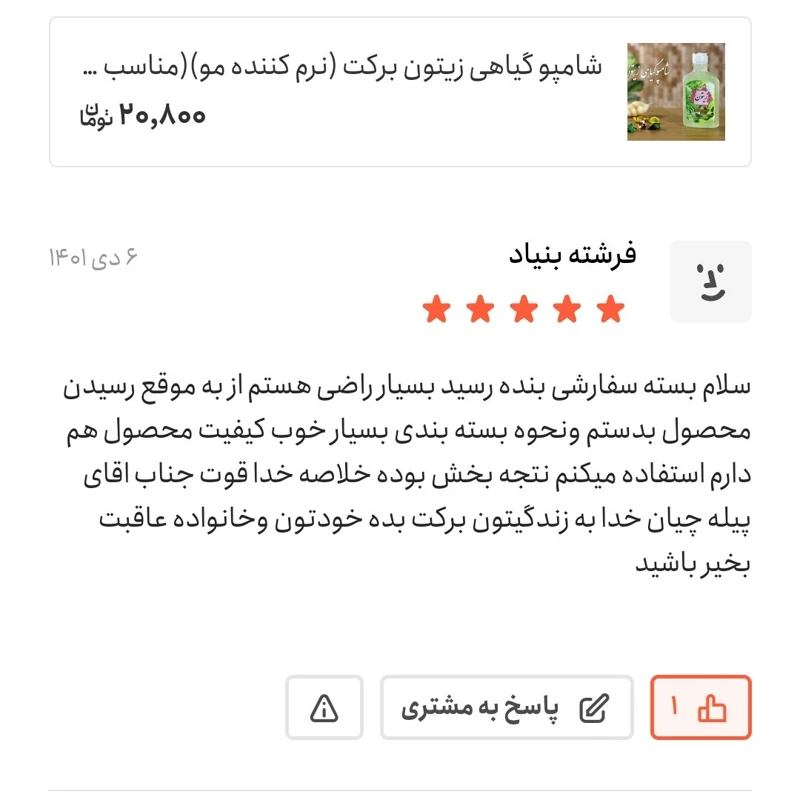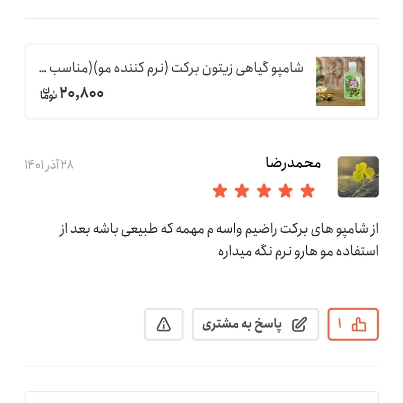 شامپو گیاهی زیتون برکت (نرم کننده مو)(مناسب موهای خشک)
