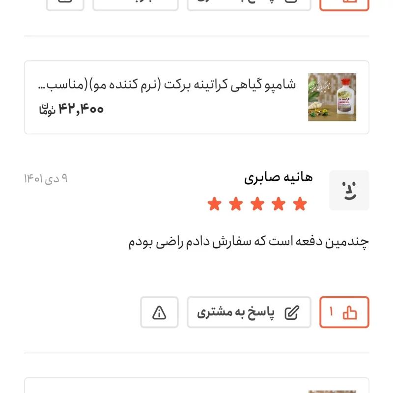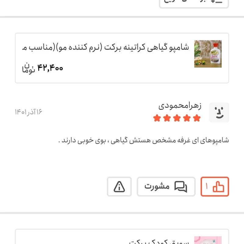 شامپو گیاهی کراتینه برکت (نرم کننده مو)(مناسب موهای رنگ شده، خشک و آسیب دیده)(مناسب بانوان)