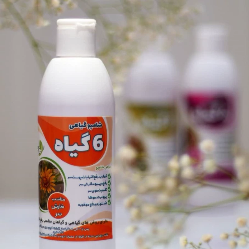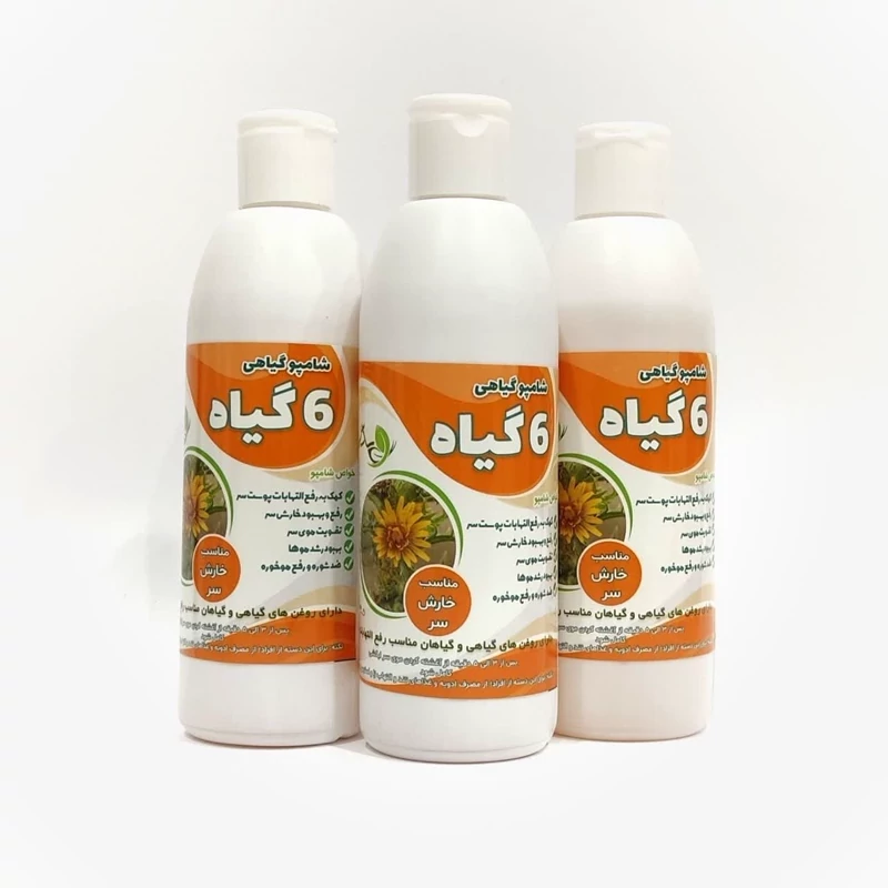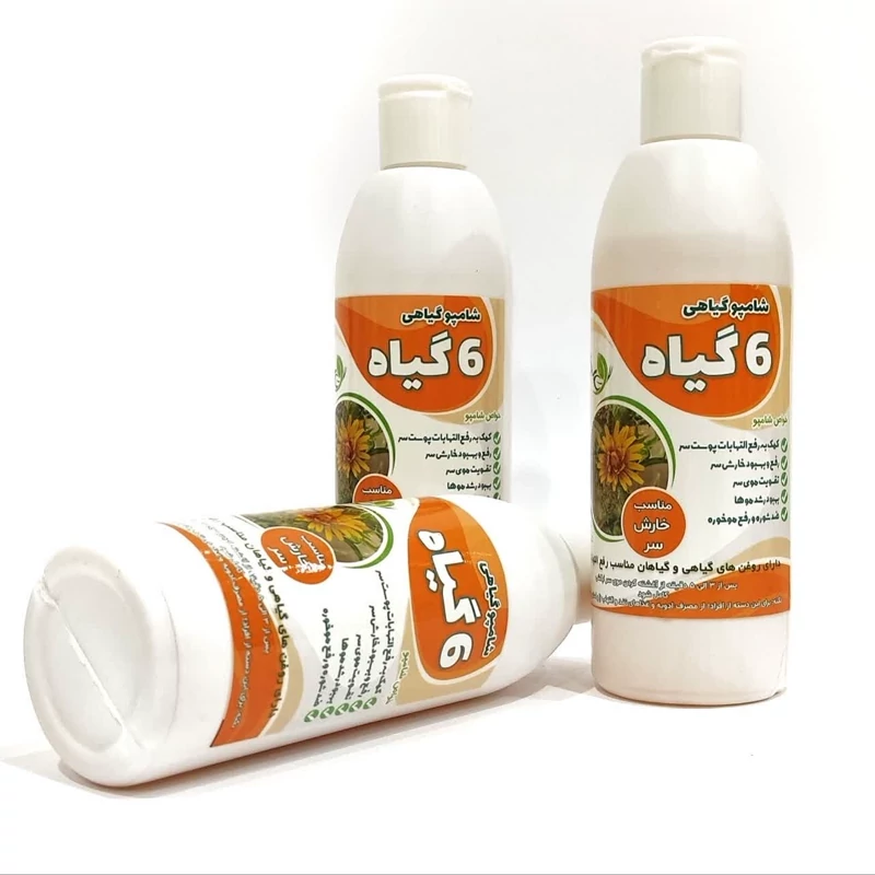 شامپو گیاهی تخصصی شش گیاه رفع التهابات پوست سر رفع خارش سر ضد شوره و موخوره تقویت و رشد موها