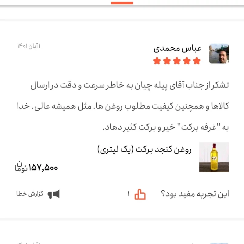 برای خرید روغن کنجد از فروشگاه برکت به بالای صفحه بروید و روی دکمه «اضافه به سبد خرید» کلیک کنید.