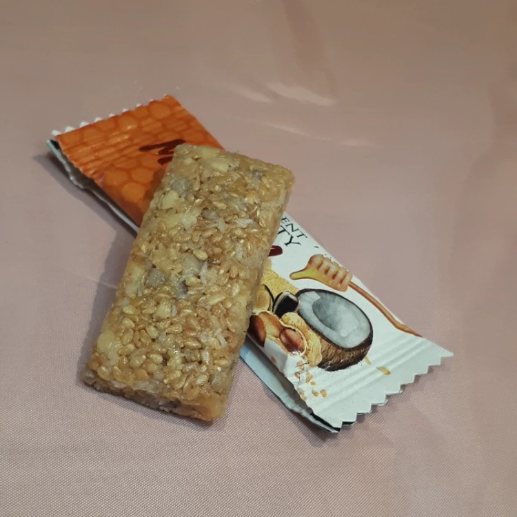 کنجد پوست کنده، عسل، مغز بادام زمینی، مغز تخمه آفتابگردان، پودر نارگیل، هل، روغن زرد. بدون شکر و مواد نگهدارنده.