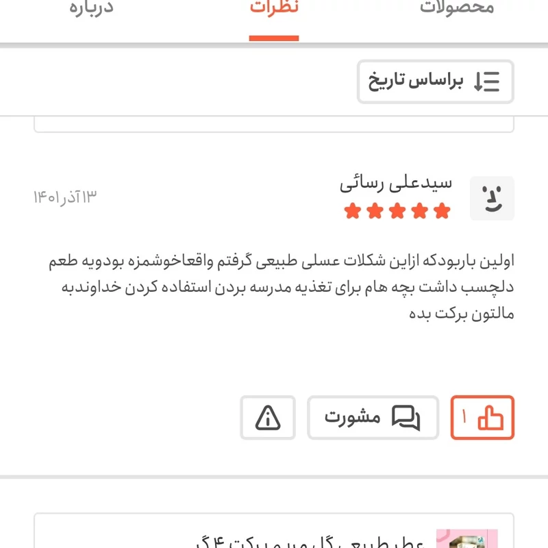 شکلات عسلی برکت به 👇 دلایل ذیل 👇 منحصر به فرد است و فعلا در بازار مشابهی ندارد: