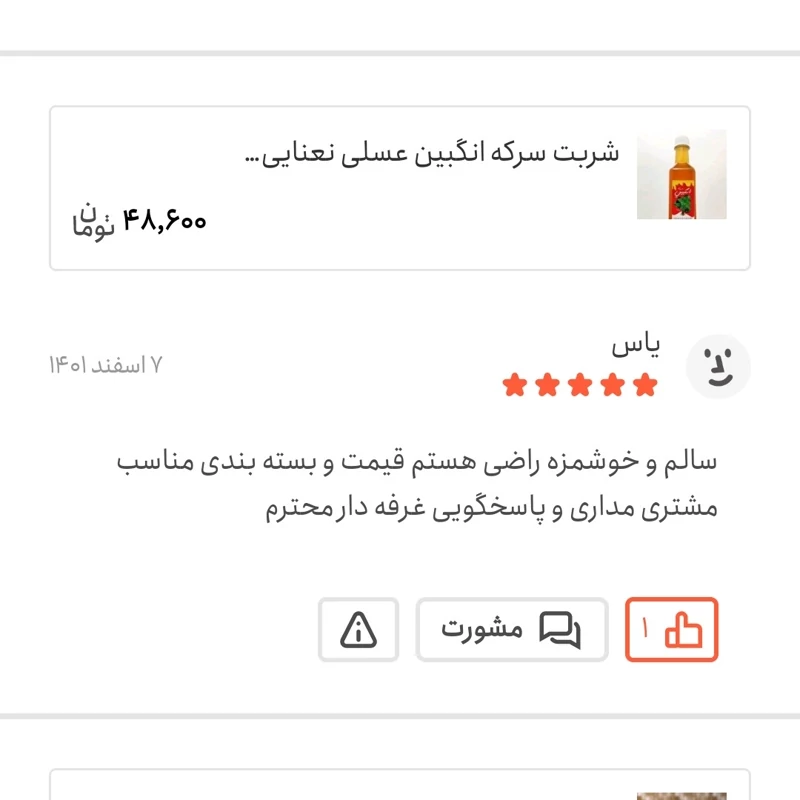 🌸 ترکیبات شربت سرکه انگبین نعنایی برکت: