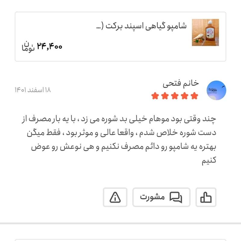 شامپو گیاهی اسپند برکت (ضد شپش)(مناسب موهای معمولی و چرب)