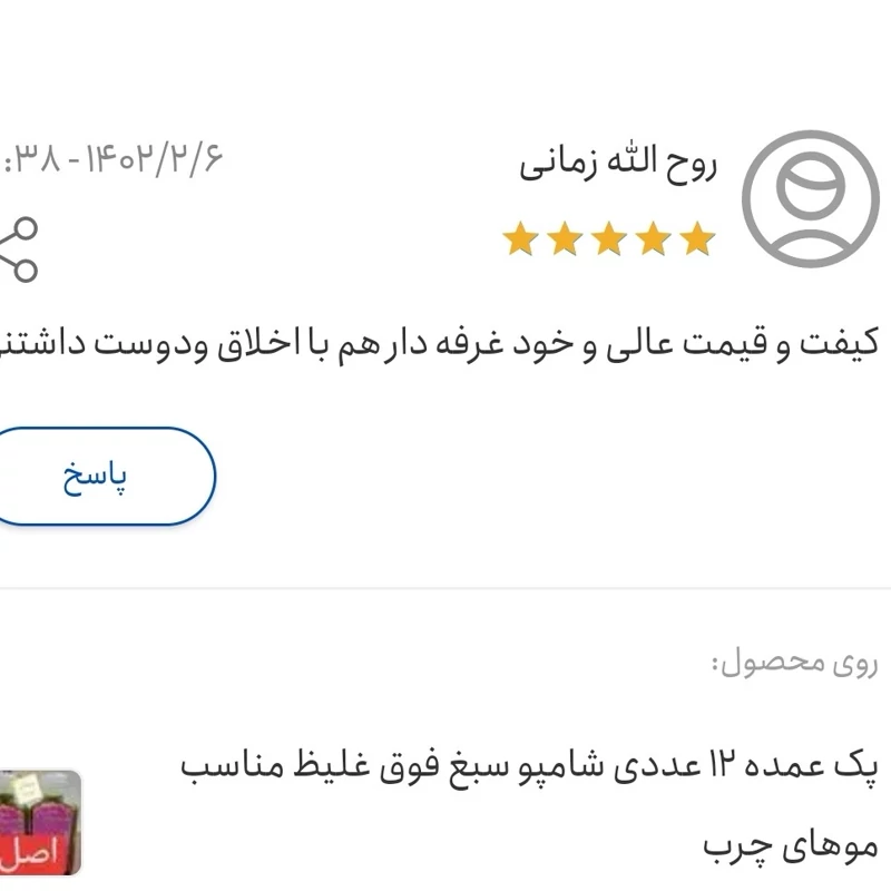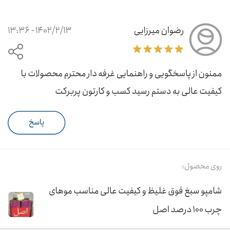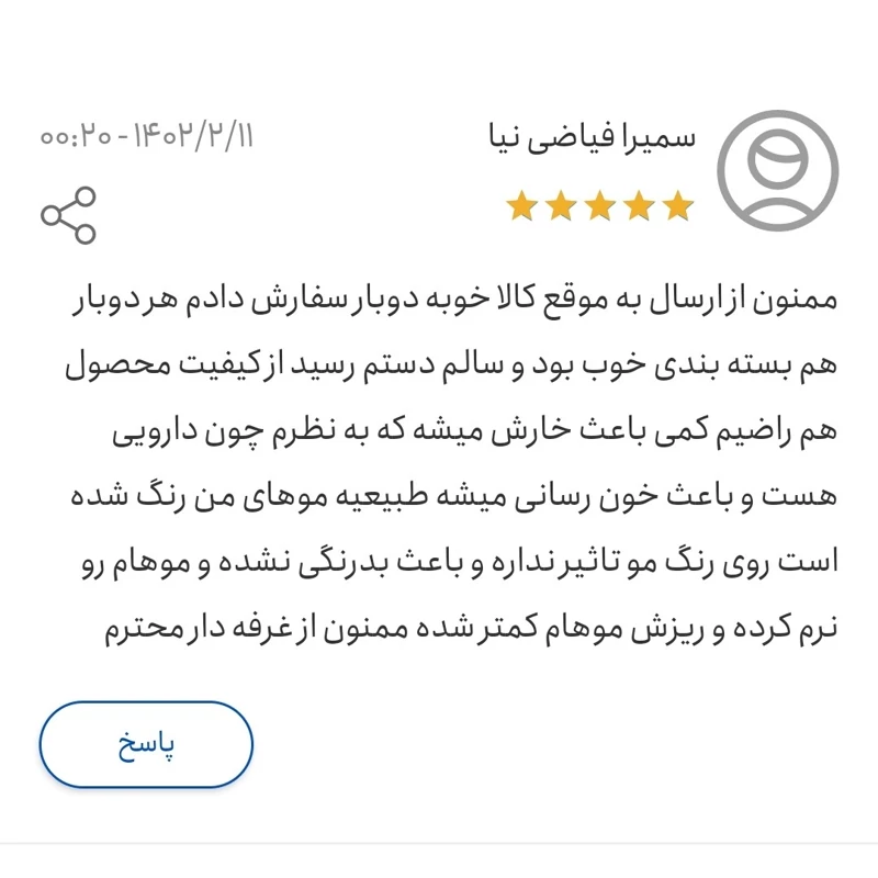 مدل 19 هزارتومانی با پایه شامپو درجه یک و مواد اولیه تازه و با کیفیت همچنین میزان رزماری بیشتر