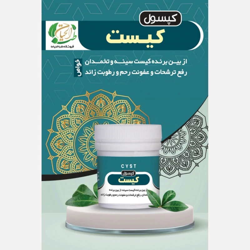 کیست 30 عددی رفع کیست سینه و تخمدان ، رفع ترشحات و عفونت رحم، رفع رطوبت زائد توصیه میگردد بهمراه شربت بانوان و عرق فراسیون مصرف گردد