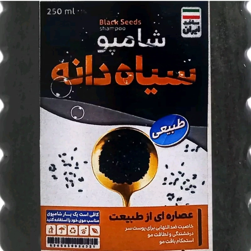 شامپو سیاهدانه گیاهی و طبیعی بدون ماده شیمیایی ضد التهابهای پوستی ، درخشان کننده ، براق کننده و نرم کننده