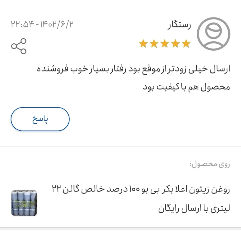 فروشگاه اینترنتی hamechihast / مواد غذایی و سوپر مارکت/ کالاهای خام و اساسی/ روغن خوراکی/ روغن زیتون