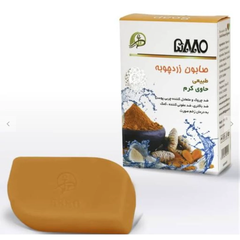 صابون زردچوبه حاوی کرم و روغن نارگیل نرم کننده، ضد آکنه، ضد جوش، روشن کننده، کلاژن ساز