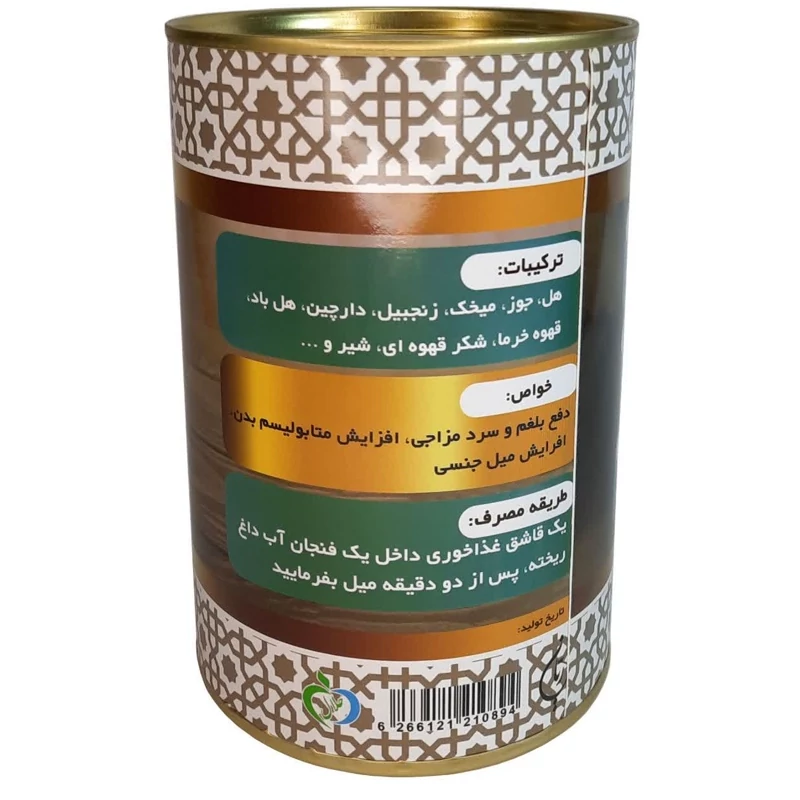 ✅ترکیبات: هل ،جوز ،میخک، زنجبیل، دارچین، هل قهوه خرما ،شکر قهوهای، شیر و... ✅خواص: دفع بلغم و سرد مزاجی افزایش متابولیسم بدن افزایش میل باه