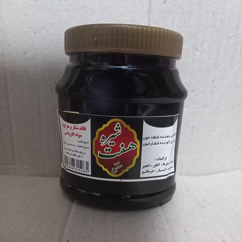 هفت شیره سنتی از ترکیب تازه ترین و خوش طعم ترین شیره ها خرما، توت، انگور ، انجیر ، سیب ، انار ، خرمالو