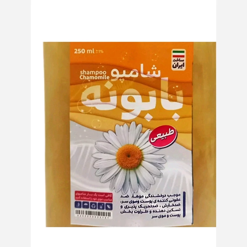 شامپو بابونه گیاهی و طبیعی ضد خارش، براق کننده ، ضد عفونی کننده ، تثبیت کننده رنگ