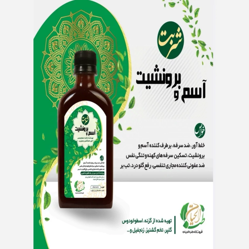 شربت آسم و برونشیت، سرفه، تنگی نفس، گلو درد، تب بر، ضدعفونی کننده