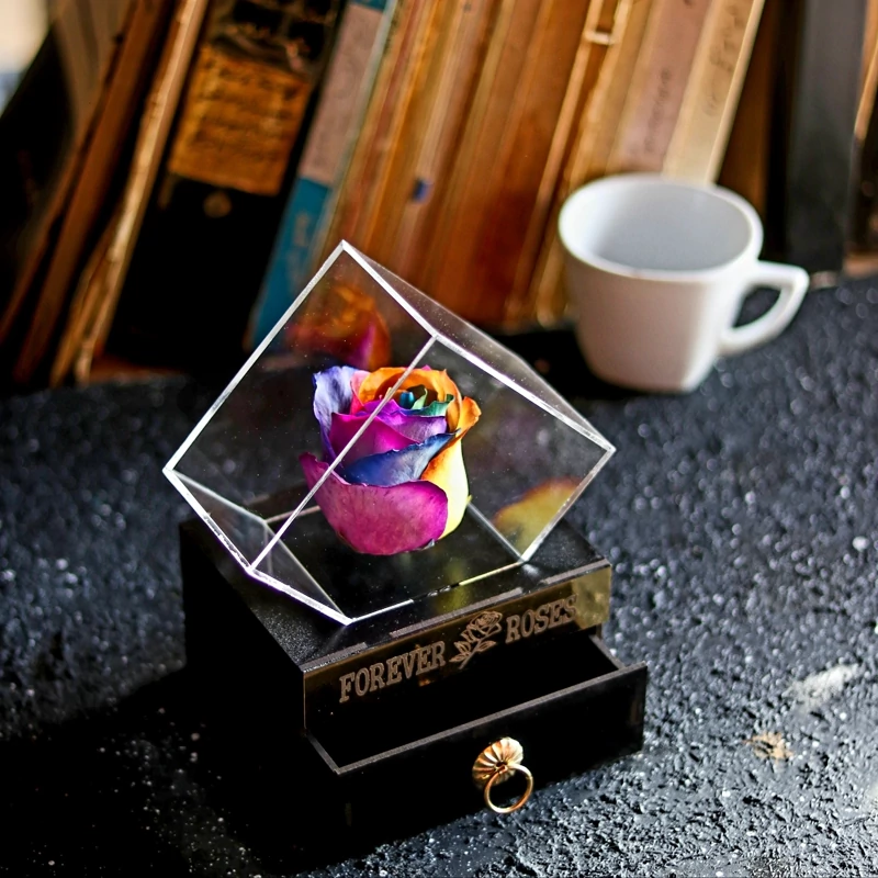 رز جاودان هفت رنگ با باکس الماس (عالیجناب)