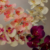 محصول کشور چین ؛ گل ارکیده ۹ گل عالیجناب در رنگ بندی فوق العاده زیبا و جدید با جنس پارچه عالی و قابل شستشو ، با حالت پذیری ماندگار مناسب انواع گلدانهای رومیزی و کنار سالنی