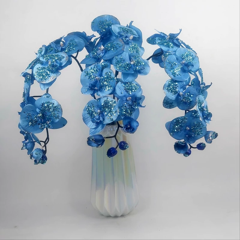 محصول کشور چین ؛ ارکیده 10 گل آبی وارداتی عالیجناب با طراحی کاردست و حالت پذیری عالی یکی از گزینه های مناسب دیزاین در دکوراسیون های سلطنتی می باشد.