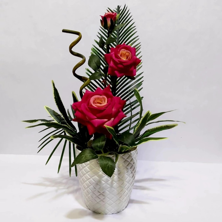 گلدان گل مصنوعی رز مخمل وارداتی(عالیجناب)