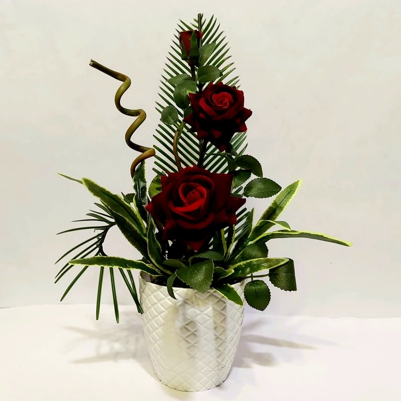 گلدان گل مصنوعی رز مخمل وارداتی(عالیجناب)