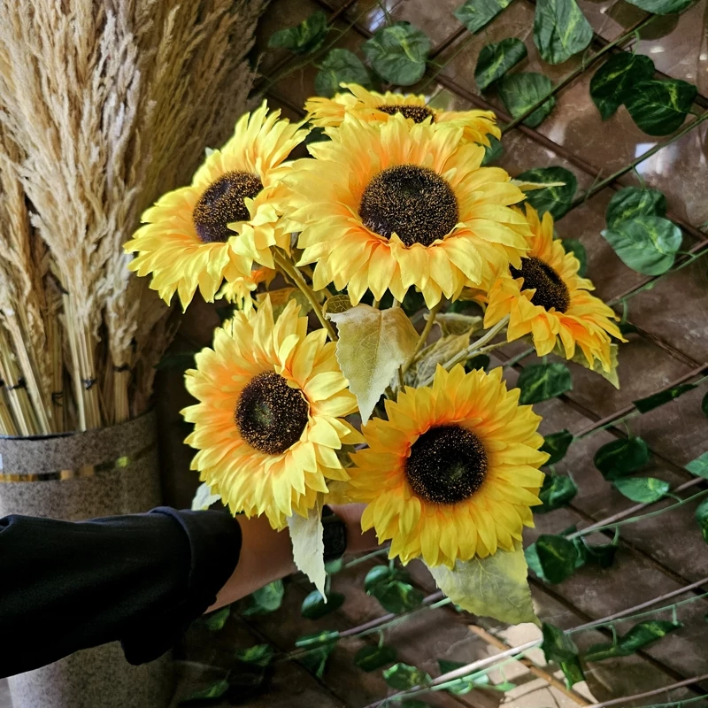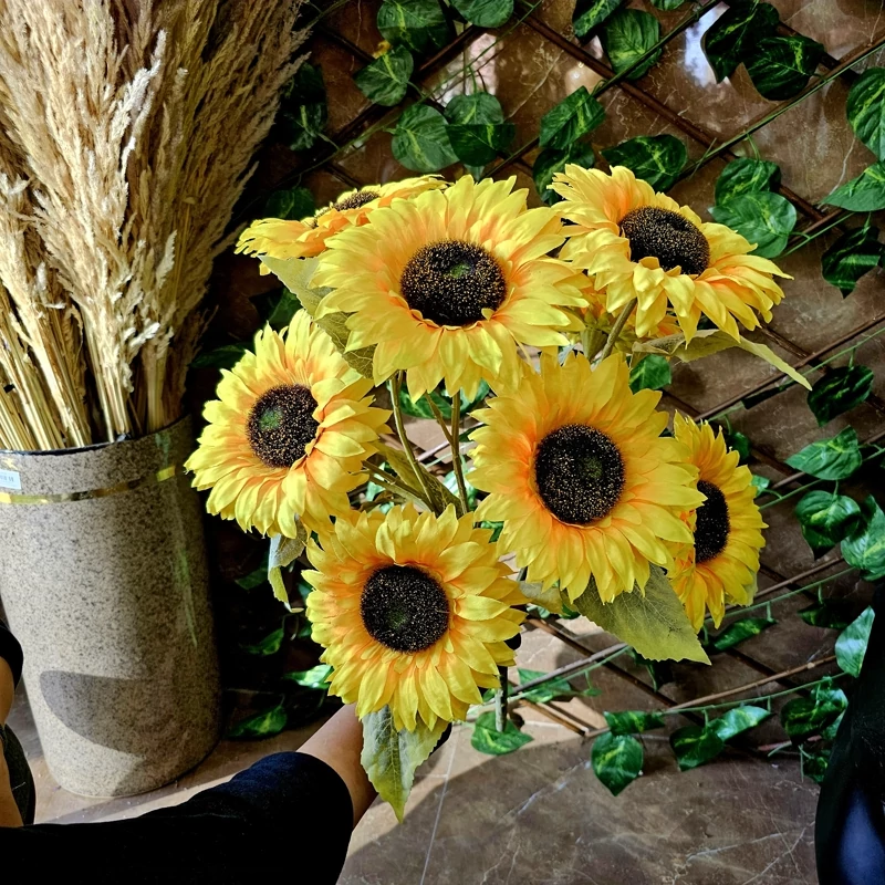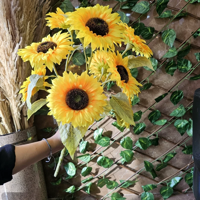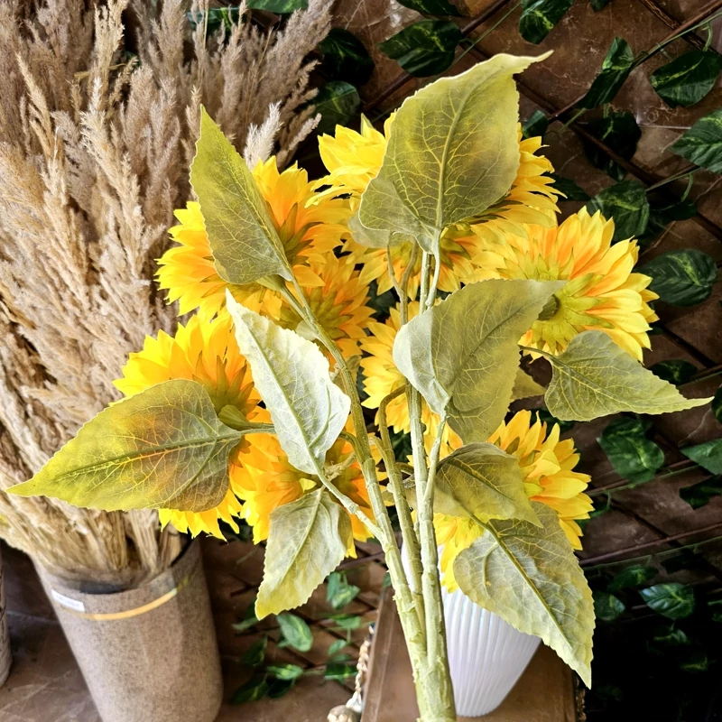 گل مصنوعی آفتابگردان مدل بوته 9گل درشت (عالیجناب)