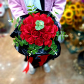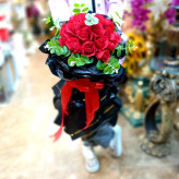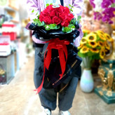 دسته گل رز قرمز مصنوعی دیزاین شده برای هدیه در ارتفاع حدود 1 متر (عالیجناب)