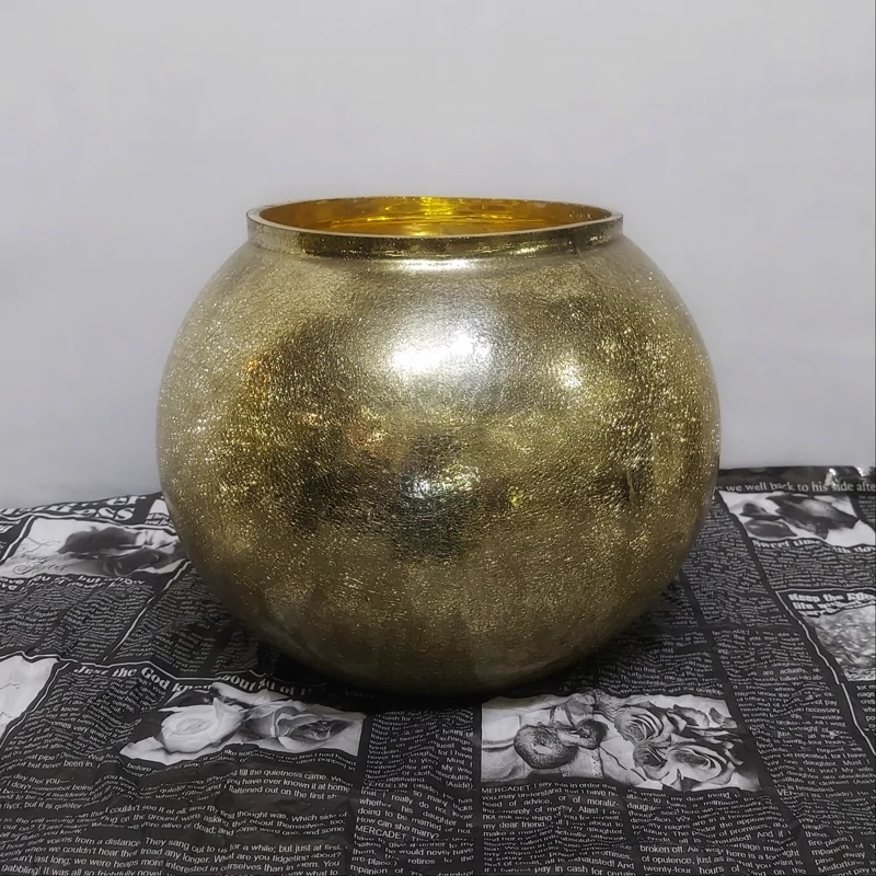 گلدان شیشه ای آبگز طلایی طرح کروی بزرگ عالیجناب در ارتفاع 22سانت