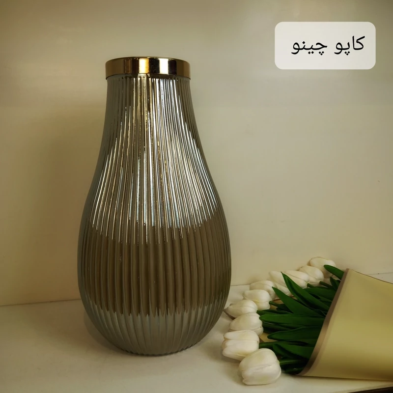 گلدان شیشه ای رنگی رومیزی آبکاری لاستر مدل شایان(عالیجناب) (پس کرایه)